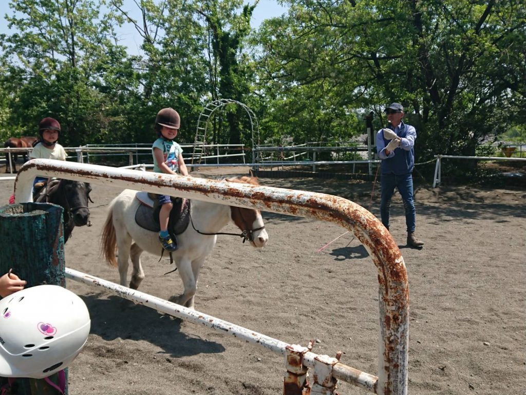 現在は週に一回園児がクラブに出かけて乗馬体験をしています。