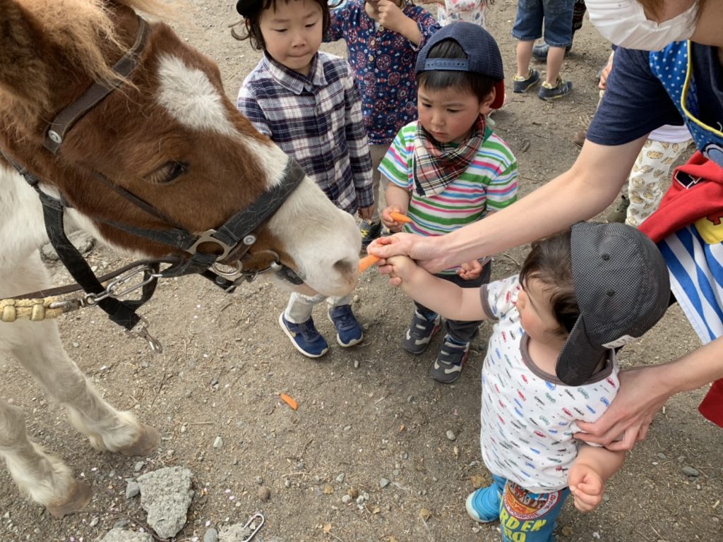 馬は優しい動物です。子ども達には動物に触れて、命の大切さを知ってほしいと思っていたのですが、園で飼うのはアレルギー児など多い昨今、難しいため、模索していたところ、卒園生の関係で乗馬クラブに乗馬体験をさせていただけることになり、園児が乗馬に出かけることになりました。